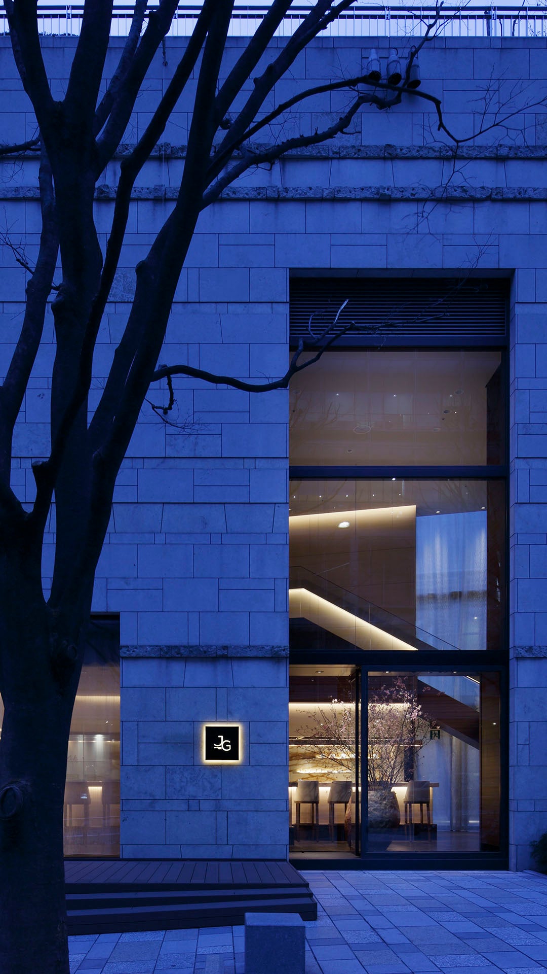 六本木にあるジャン・ジョルジュ トウキョウは、ジャン・ジョルジュの39店舗の中で最もコンパクトなレストラン。トレンドの中心地である六本木にそぐうよう、「洗練」さをキーワードにデザイン。客席は鮨屋のようなカウンター。2階への階段の吹き抜け部分には、和紙のシェイドのペンダントライトを配しています。2階にはNYのダイニングルームを感じられる円形テーブルとシャンデリアの個室を設えています。
